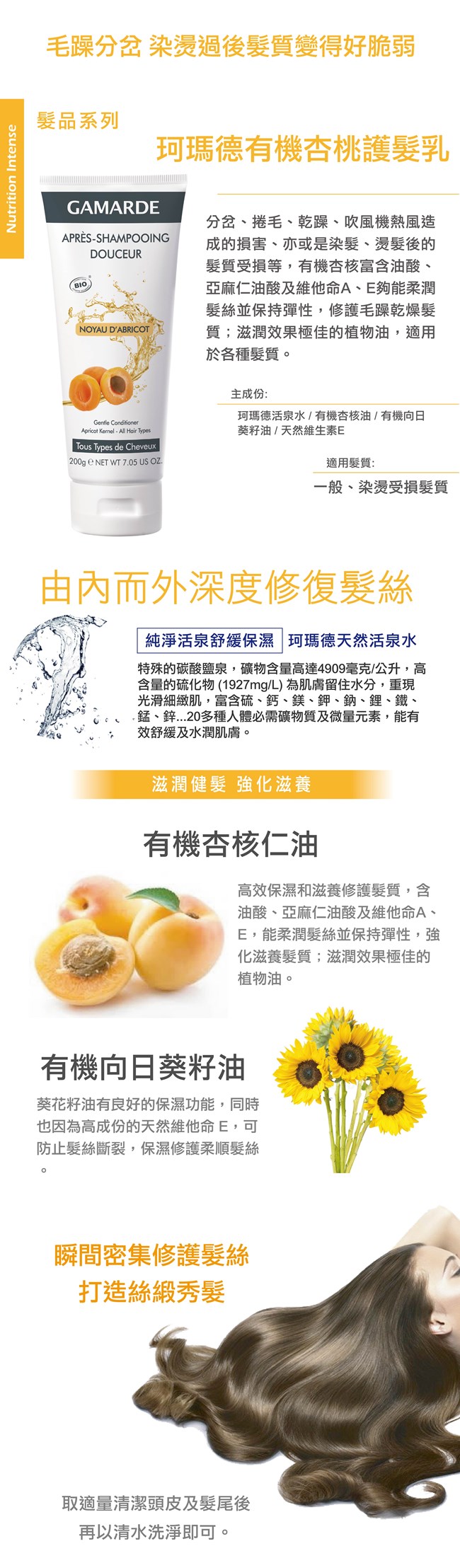 【GAMARDE 珂瑪德】珂瑪德有機杏桃護髮乳200g