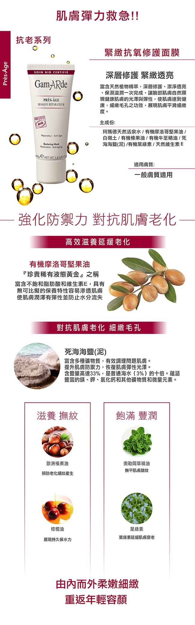 【GAMARDE 珂瑪德】緊緻抗氧修護面膜40g