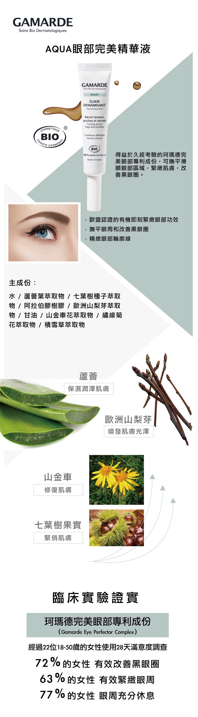- 歐盟認證的有機即刻緊緻眼部功效