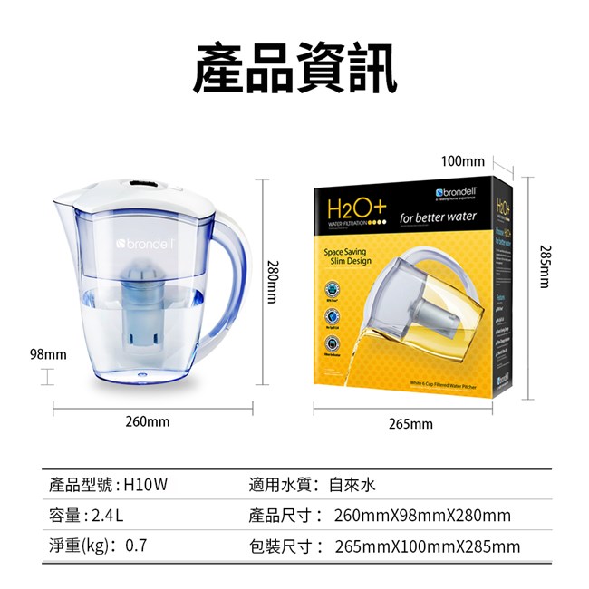 ✿ 內容物:【Brondell】美國邦特爾極淨濾水壺