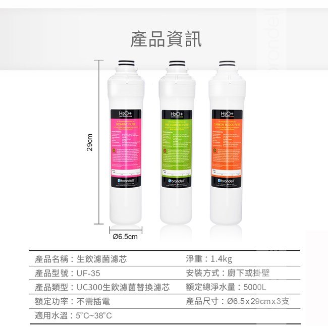 . 內容物:UC300 替換濾芯組(3隻/組)