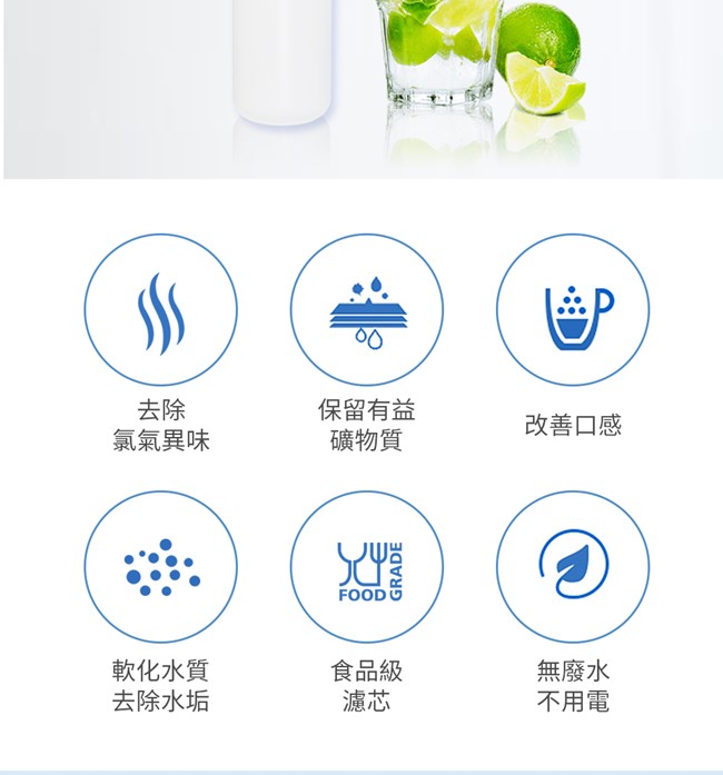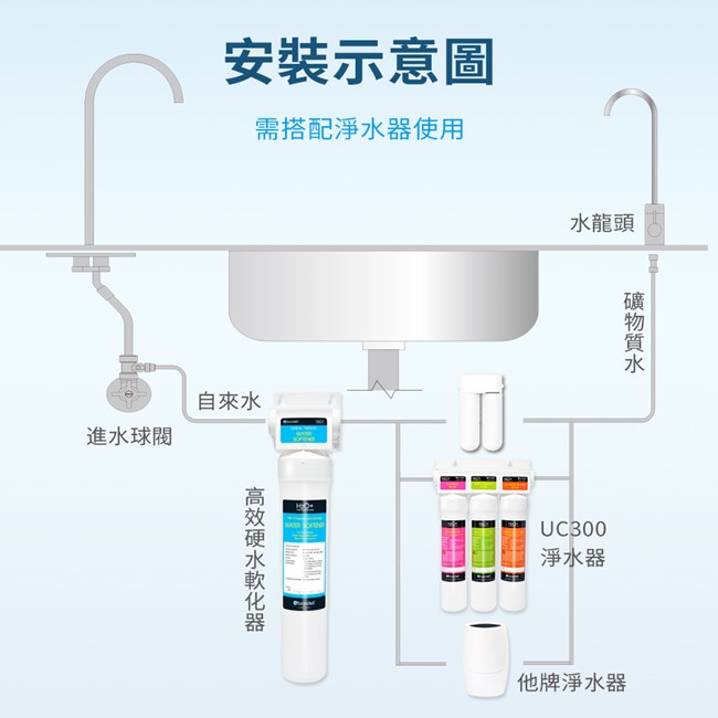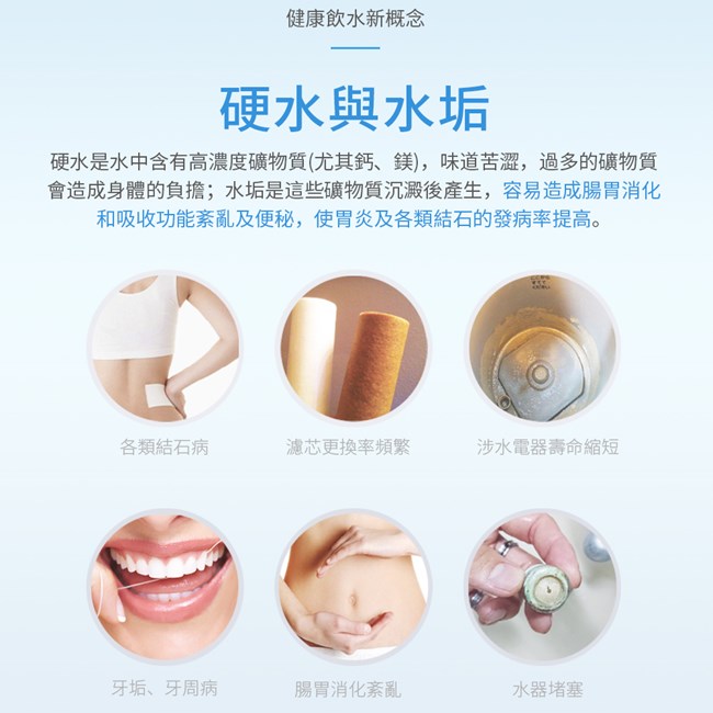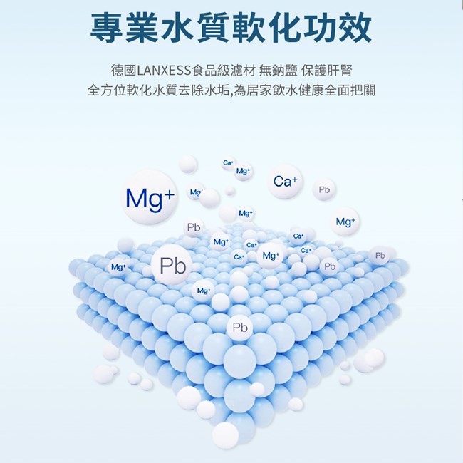 . 功效:強效去除水中石灰質(鈣鎂離子),軟化水質防止水垢產生、口感提升
