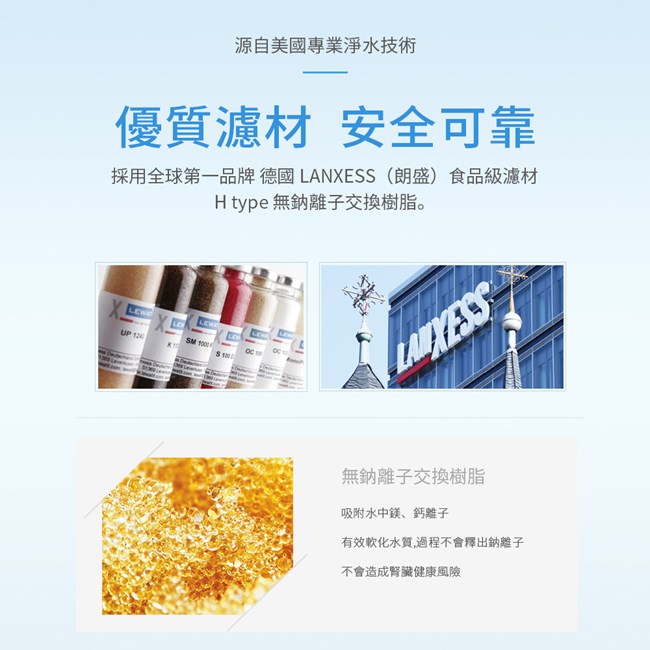 . 成分:德國LANXESS 食品級 H type 無鈉離子交換樹酯