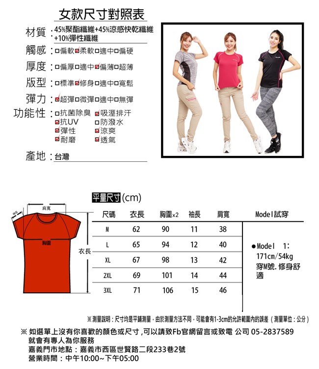 材質:45% 聚脂纖維 +45% 快乾纖維 + 10% 四向彈性纖維