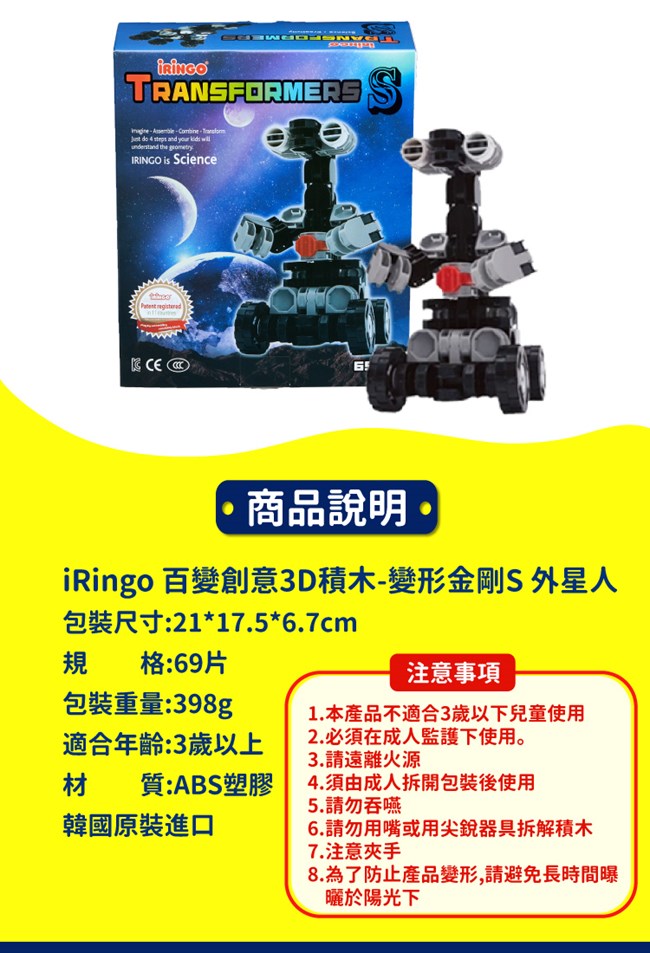 韓國iRingo 百變創意3D積木-變形金剛(外星人)