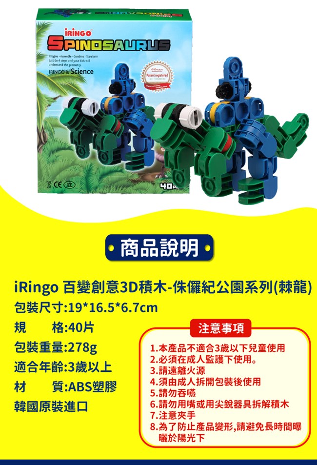 韓國iRingo 百變創意3D積木-侏儸紀公園(棘龍)