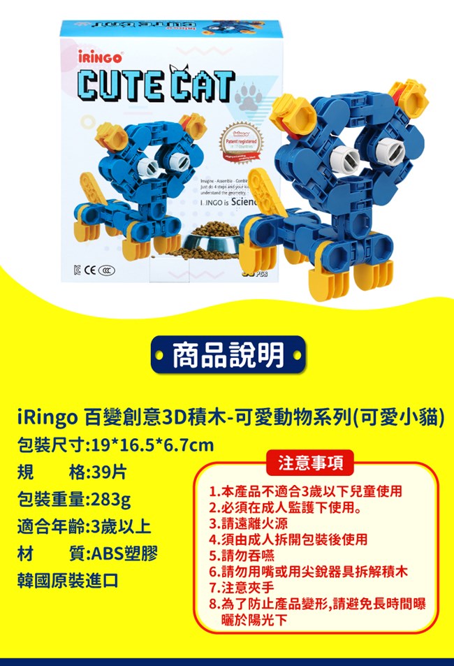 韓國iRingo 百變創意3D積木-可愛小貓
