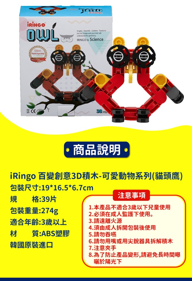 韓國iRingo 百變創意3D積木-貓頭鷹