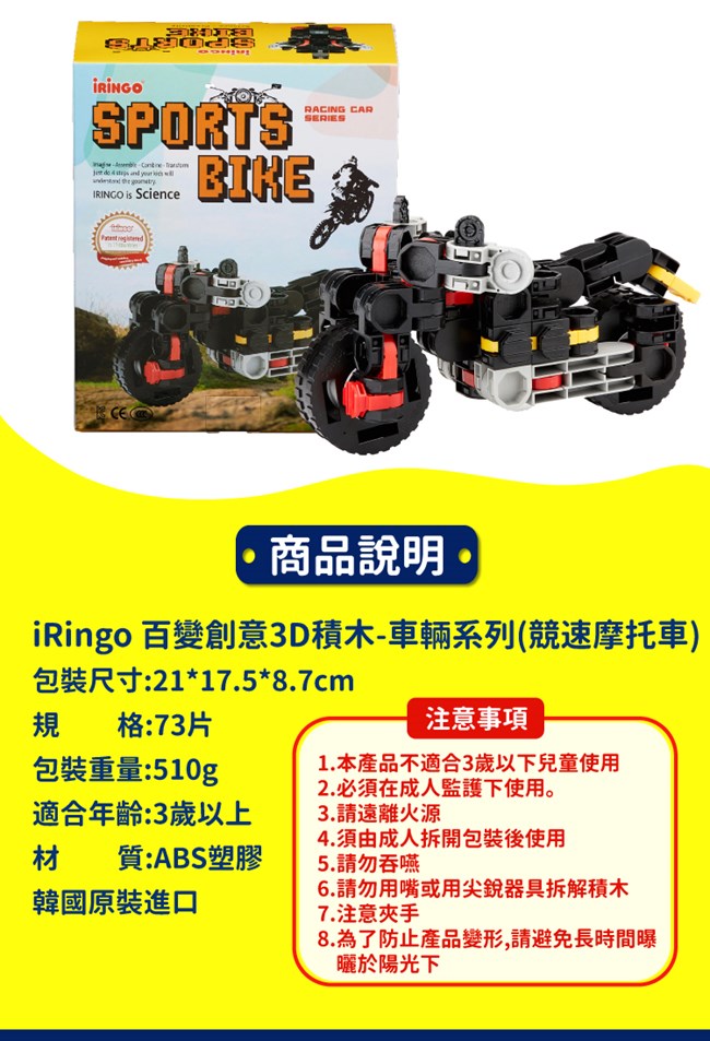 韓國iRingo 百變創意3D積木-車輛系列(競速摩托車)
