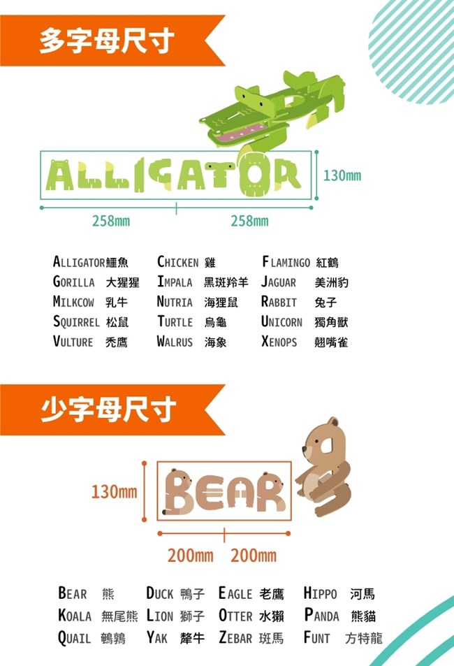 規格:26+1組字母動物組合