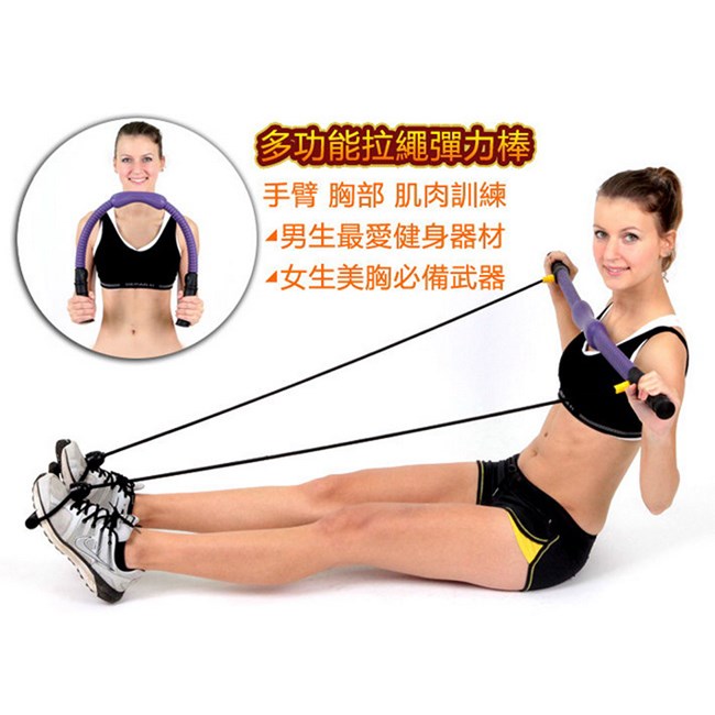 3. 握力棒及彈力繩的組合,使用範圍甚廣,運動效果可涵蓋擴胸,鍛鍊肌肉,肢體充分伸展