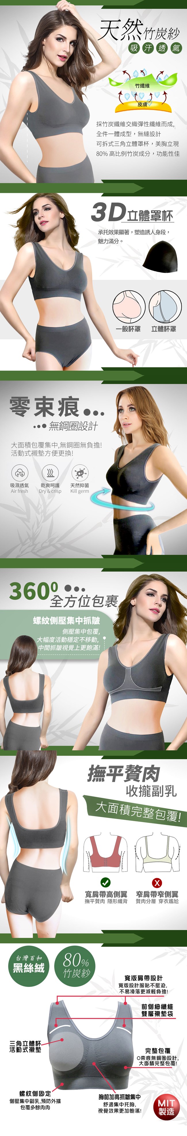 商品組合【JS嚴選】台灣製高機能竹炭健康美胸內衣*3入