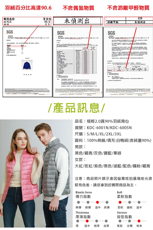 極輕2.0真90%羽絨背心(KDC-6001N/KDC-6005N)
