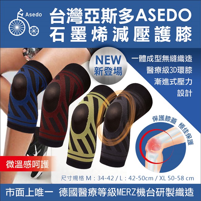 Asedo亞斯多二代石墨烯減壓護膝 (M/L/XL)
