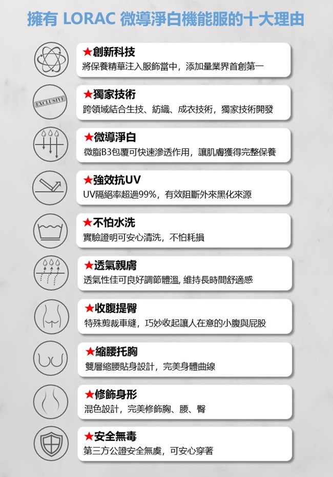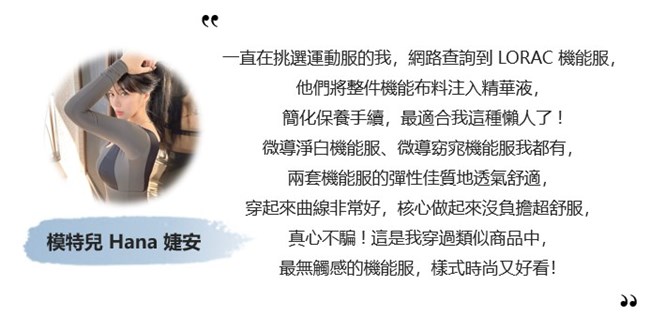 品名 : LORAC 微導淨白機能服 (上衣)。