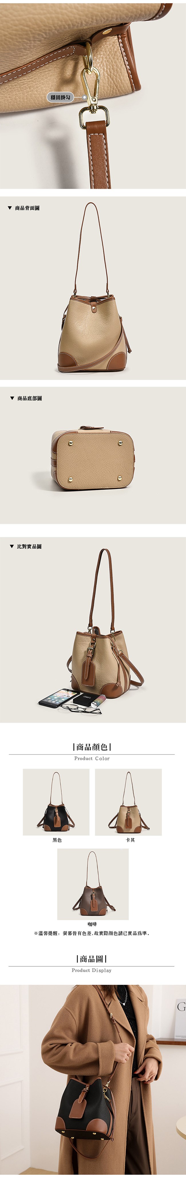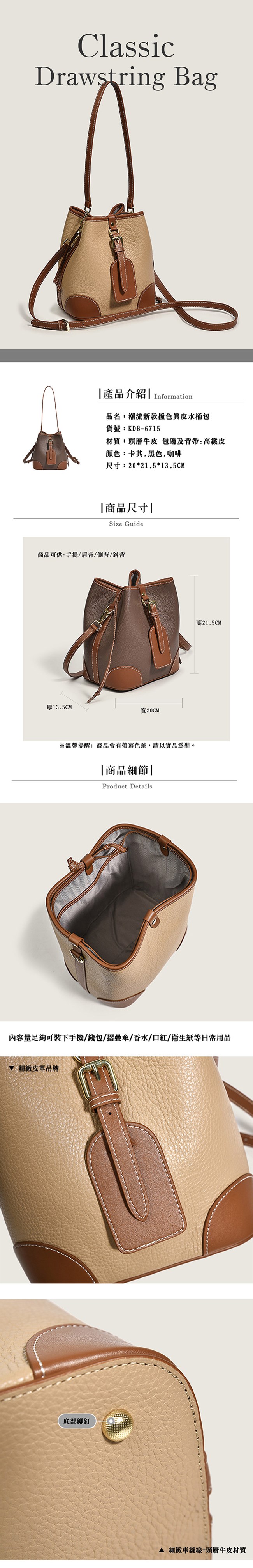 【L’eBeauty】植鞣細緻頭層牛皮水桶包 KDB-6715B(真皮/手提包/側肩包/斜背包/大容量)-美