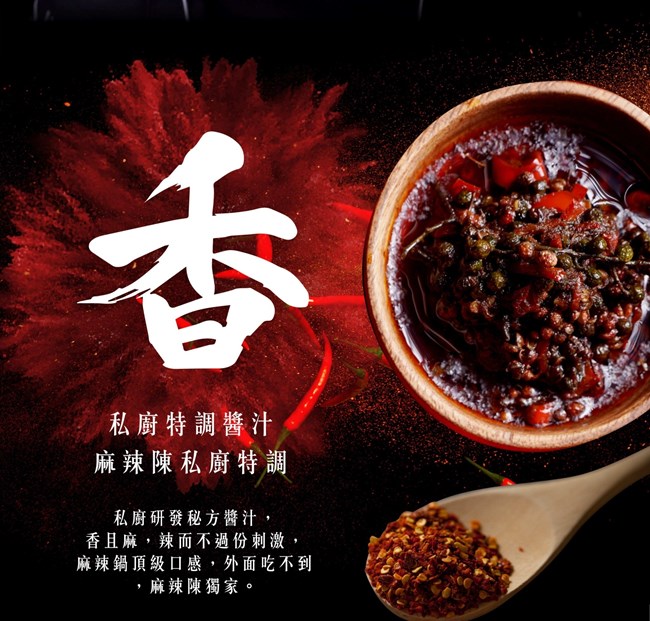 ▲香!私廚研發特調秘方醬汁,香而麻辣卻不過份刺激,祖傳皇室秘方混合多種中藥材,搭配百分百橄欖油及生機海鹽製作,進口四川綠花椒特製麻香製成!