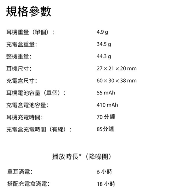 耳機重量:4.9 克