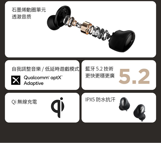 ★ 支持Qi認證,無線充電 ★ 石墨烯動圈單元,透徹音質