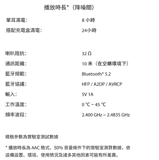 耳機電池容量(單耳):55 mAh
