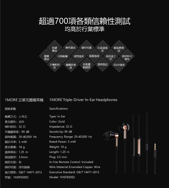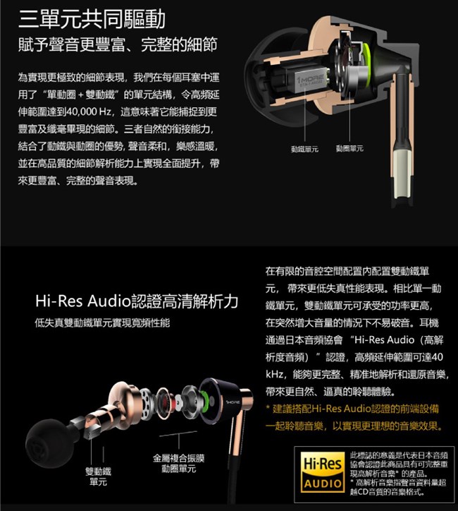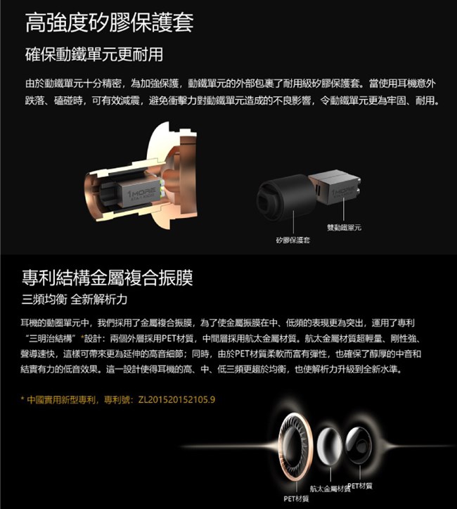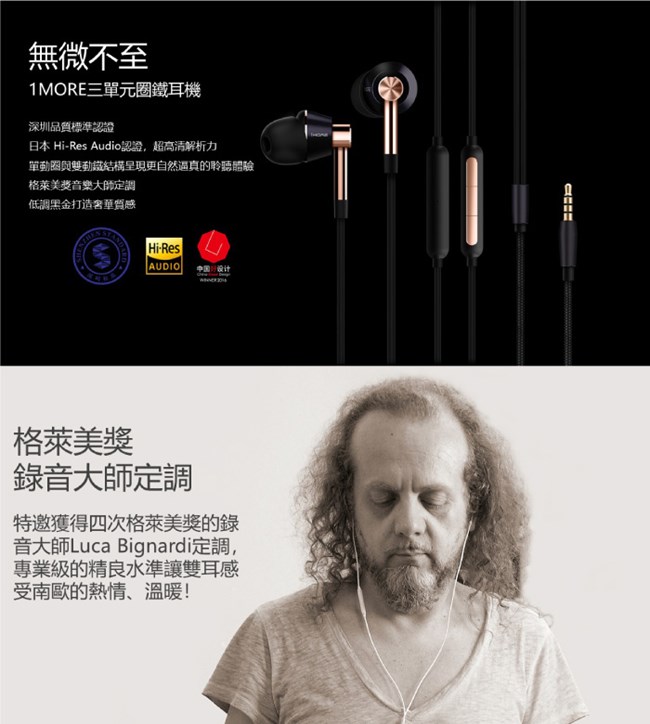 【1MORE】三單元圈鐵有線耳機 / E1001