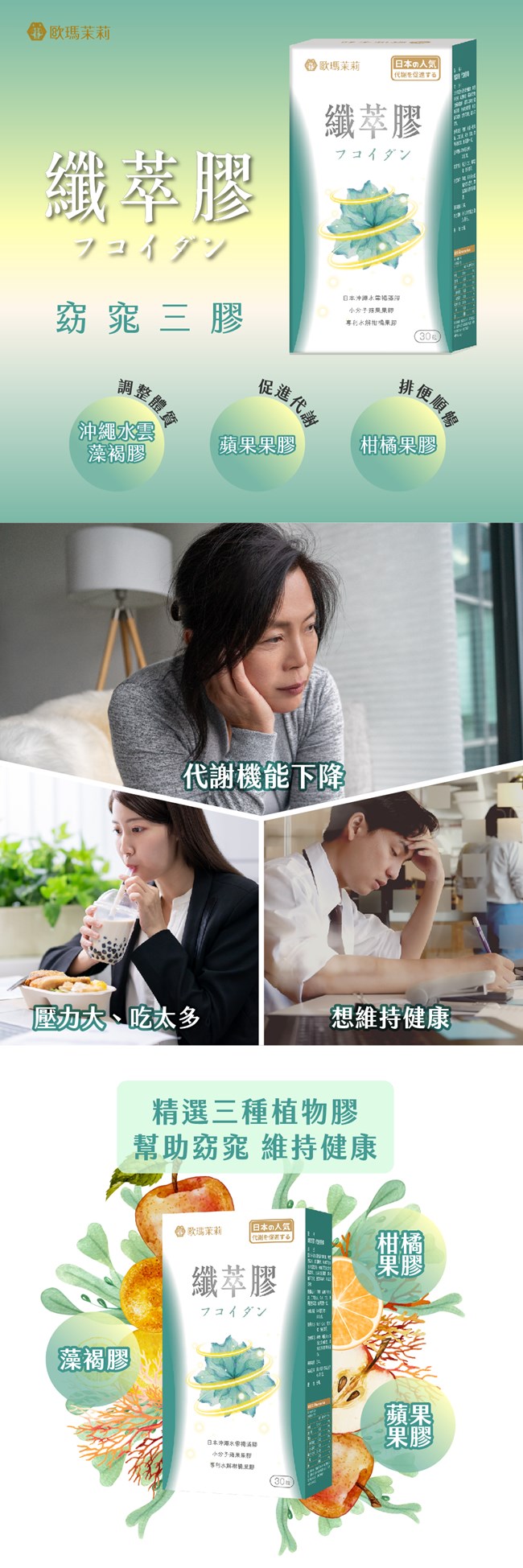 【歐瑪茉莉】纖萃膠代謝膠囊 30粒x3盒(沖繩褐藻醣膠+膳食纖維-順暢窈窕)