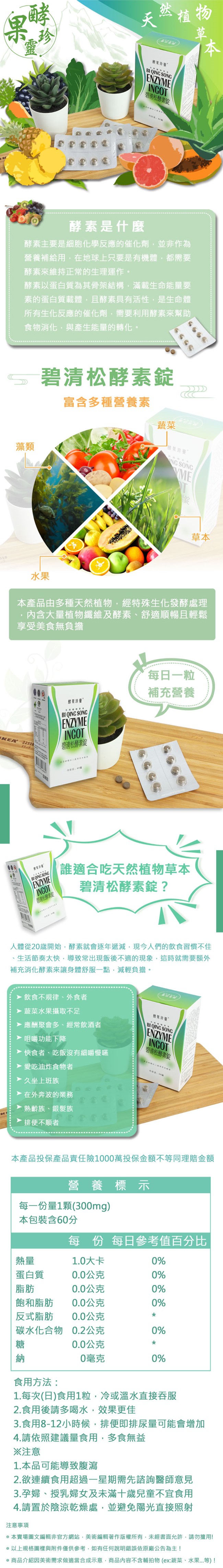 酵果珍靈 碧清松酵素錠(天然植物草本-60錠)