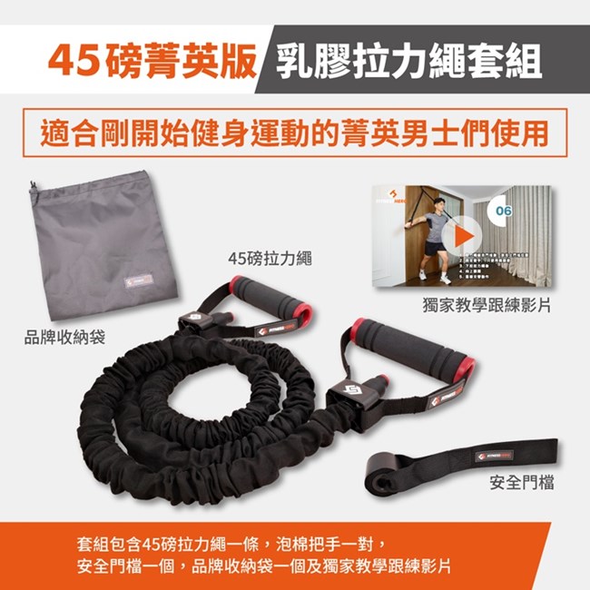 45磅菁英版 天然乳膠拉力繩 適合剛要開始運動健身的或是體重60公斤以下的朋友!