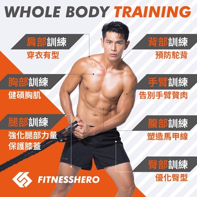 健身英雄FitnessHero 天然乳膠拉力繩:讓您一條練全身 ! 掃描QR CODE,立刻跟著祖雄教練一起練!