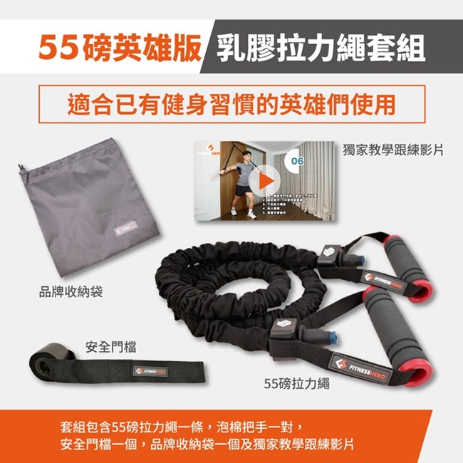 產品名稱:健身英雄FITNESS HERO 55磅菁英版天然乳膠拉力繩套組