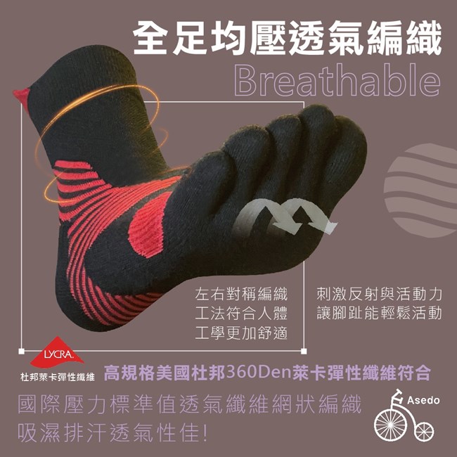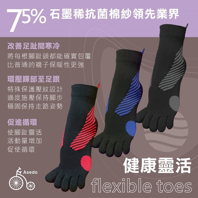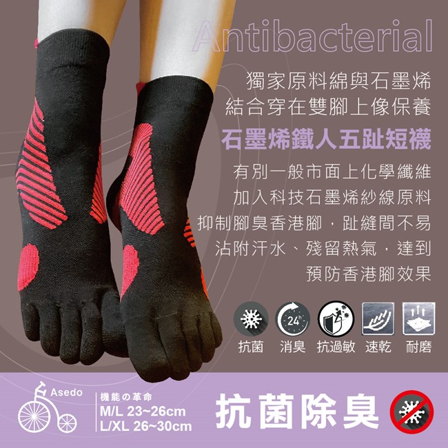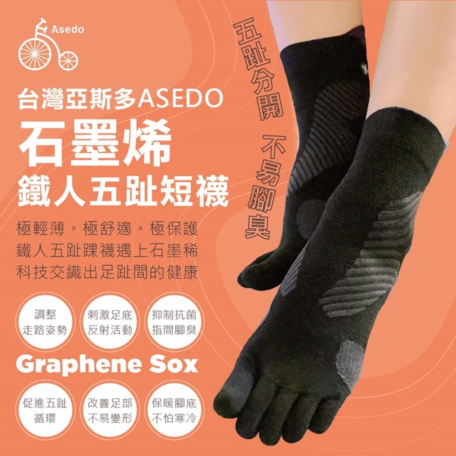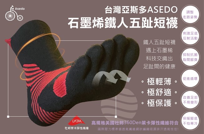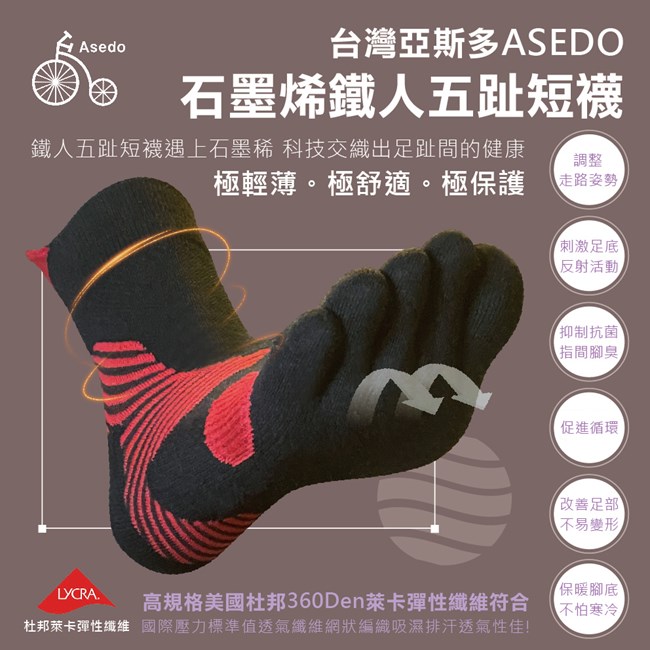 台灣亞斯多 ASEDO 石墨烯鐵人五趾短襪
