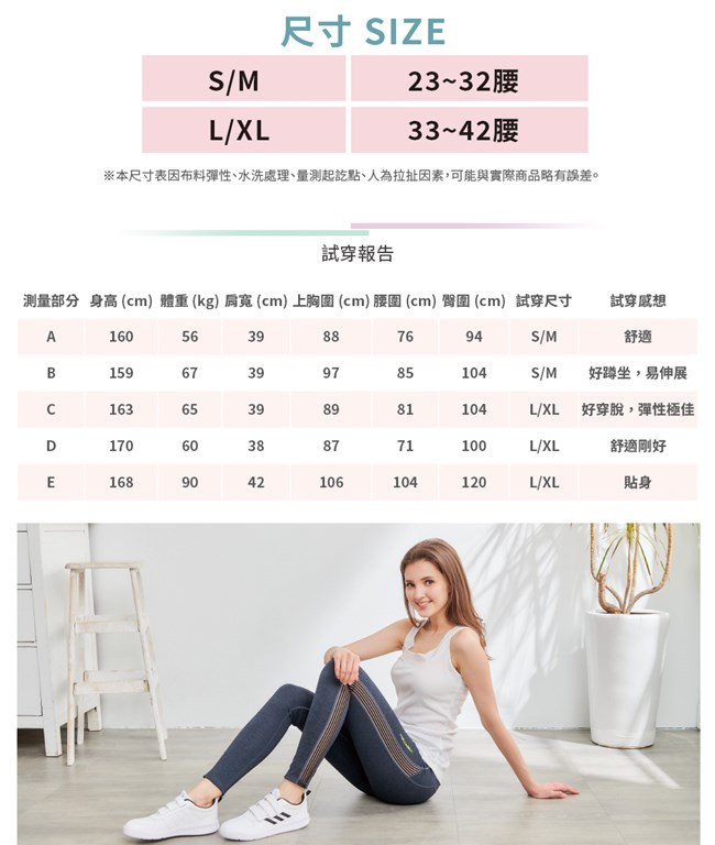 二段尺碼 S/M (23-32腰) 、 L/XL (33-38腰)