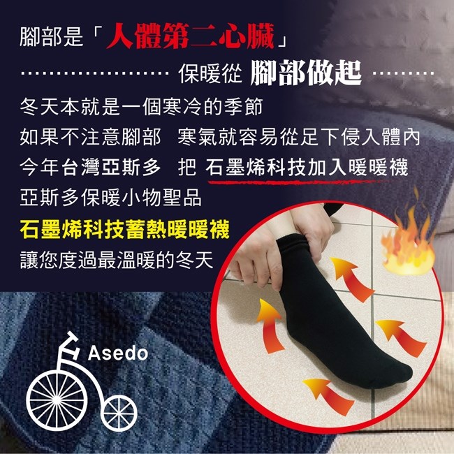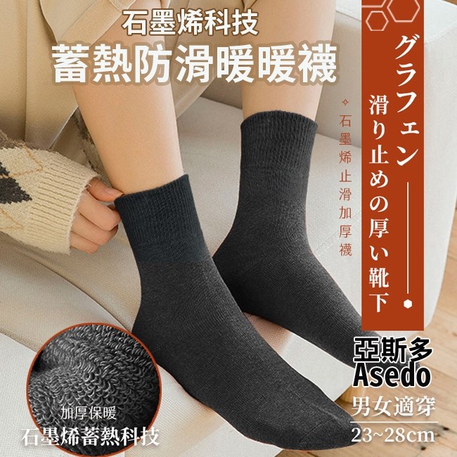 (成人款) 台灣亞斯多 Asedo 二代石墨烯科技防滑恆溫暖暖襪(1雙) 男女適用