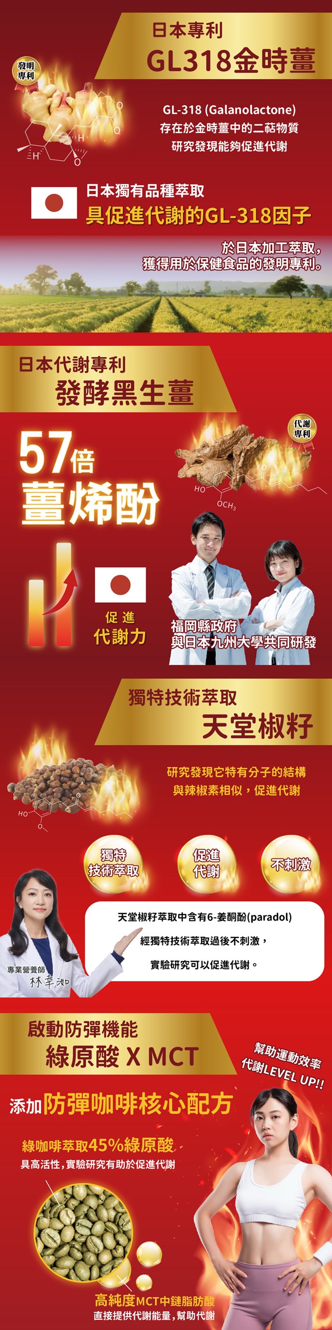 ◆搭配日本專利57倍薑烯酚,調節生理機能