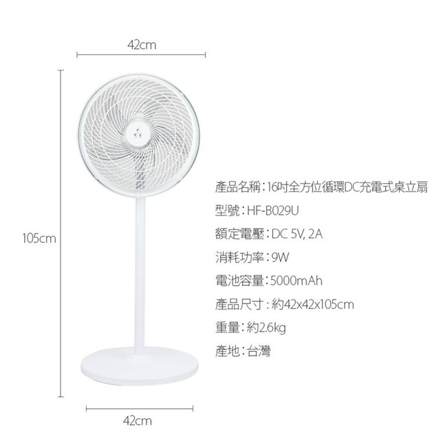 (停電免驚)【勳風】16吋USB無線DC立扇 台灣製造-美