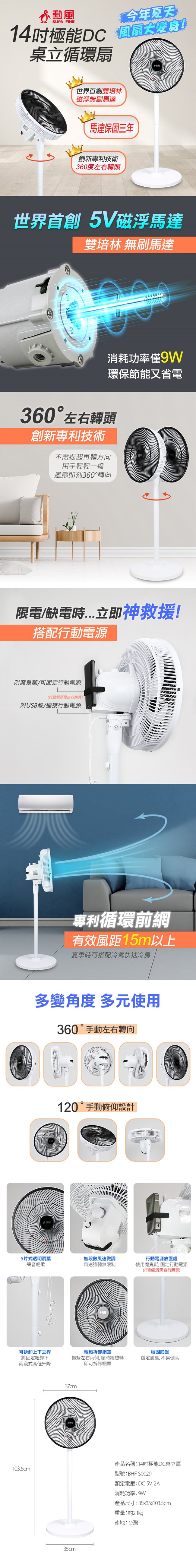 (停電免驚)【勳風】14吋DC極能循環立扇 台灣製造-美