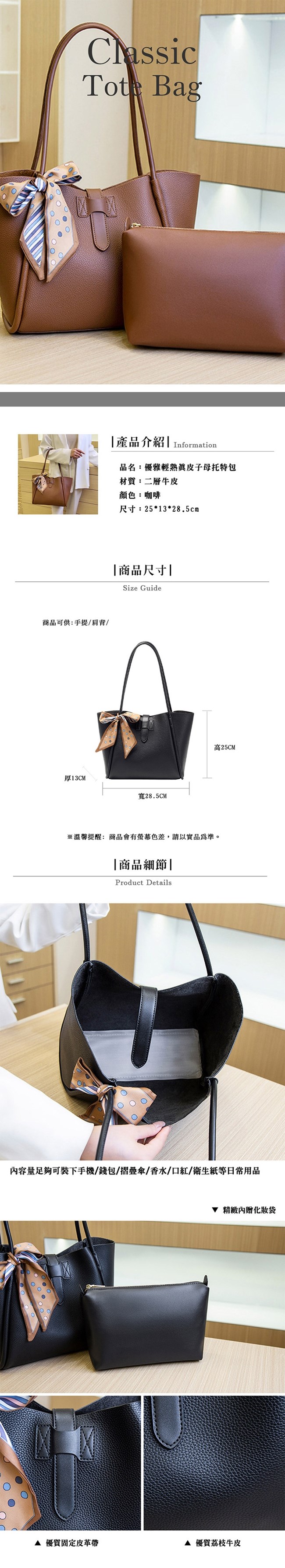 【L’eBeauty】優雅輕熟真皮子母托特包 KDB-6850(真皮/手提包/側肩包/子母包)-美