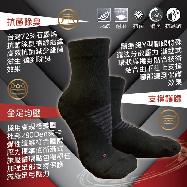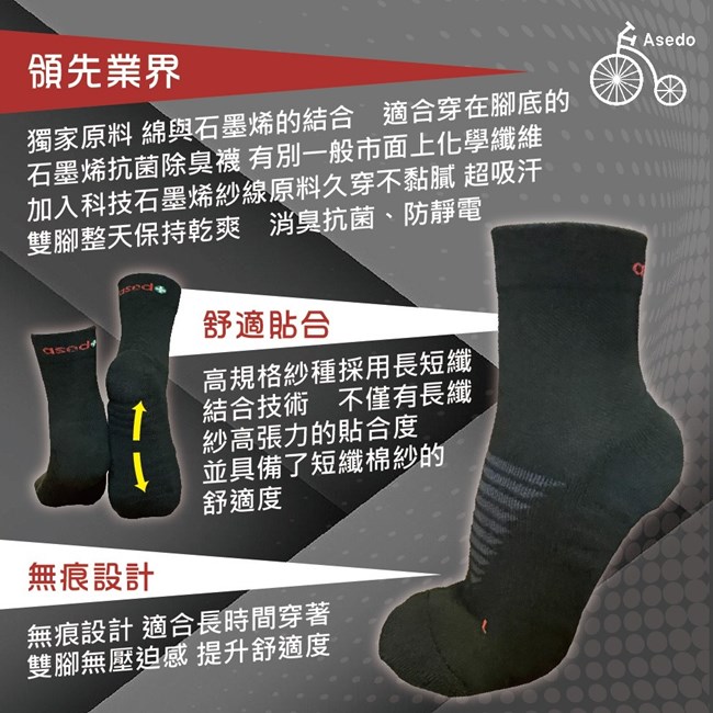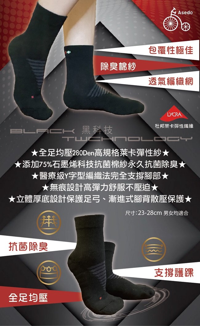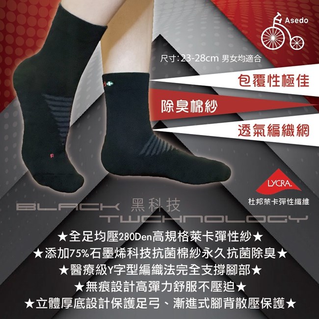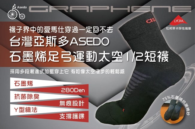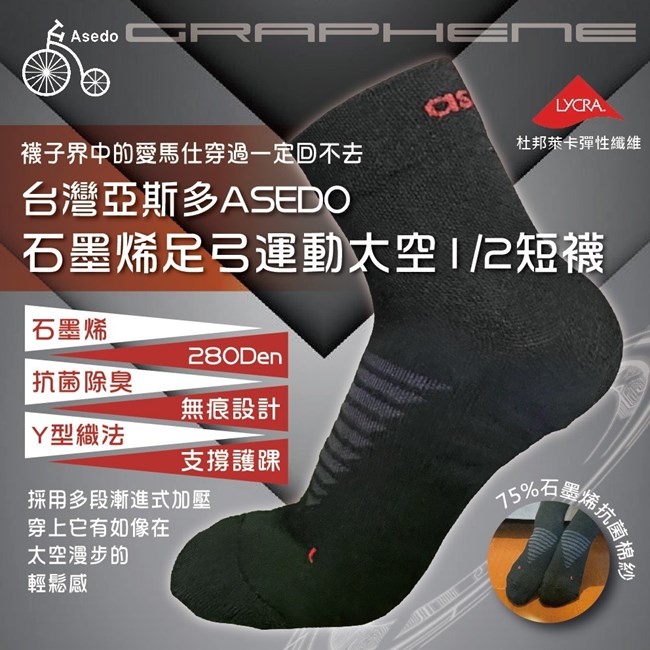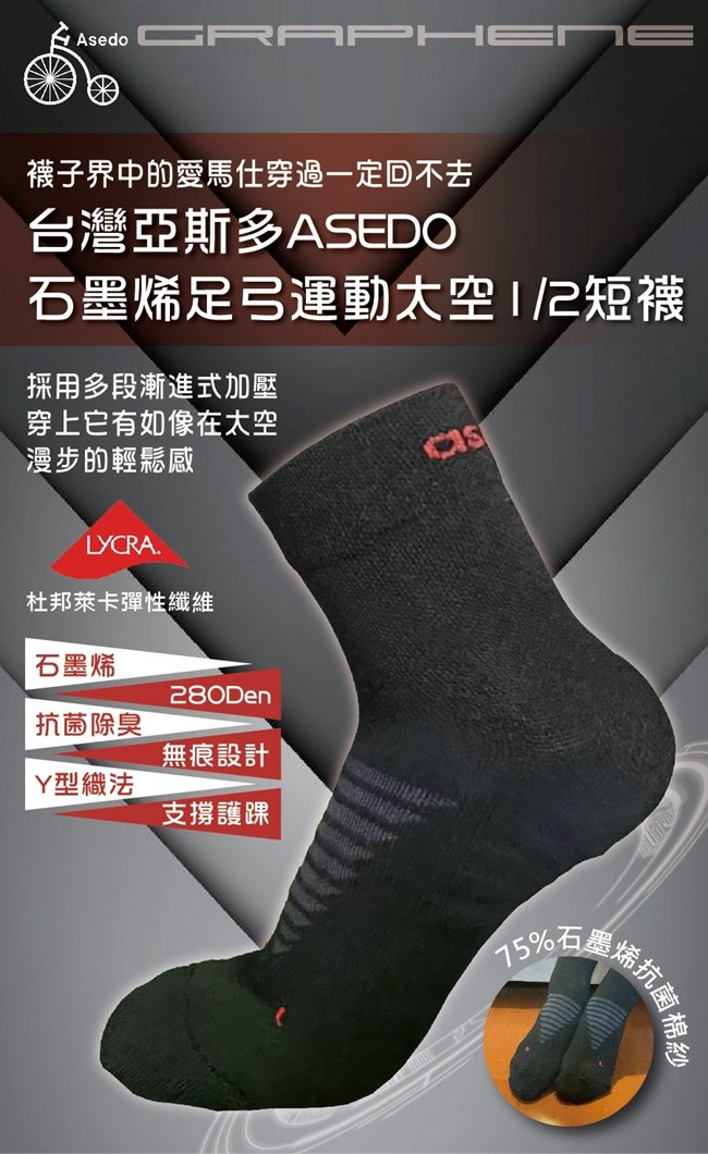 台灣亞斯多 ASEDO 石墨烯足弓運動太空二分之一短襪