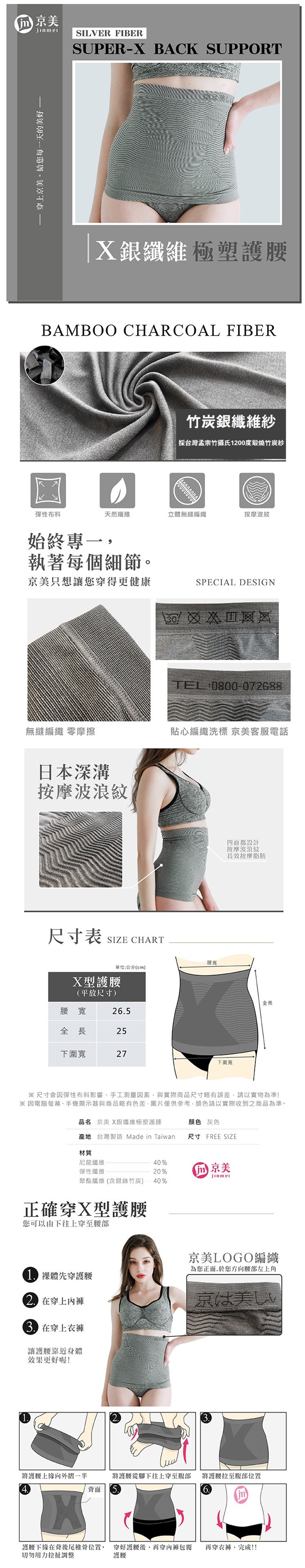 護腰:聚酯纖維(含竹炭銀絲成分)40%、聚胺纖維40%、彈性纖維20%