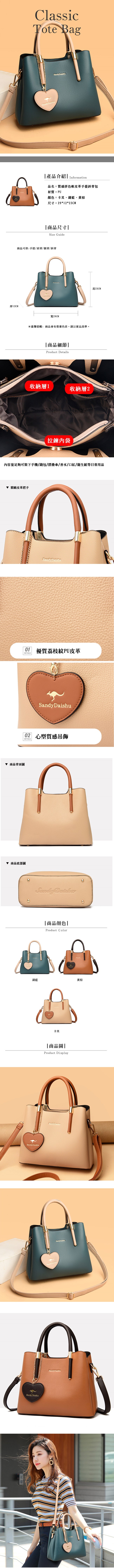 【L’eBeauty】質感拼色軟皮革手提斜背包 KDB-5208(手提包/側肩包/斜背包/大容量)-美