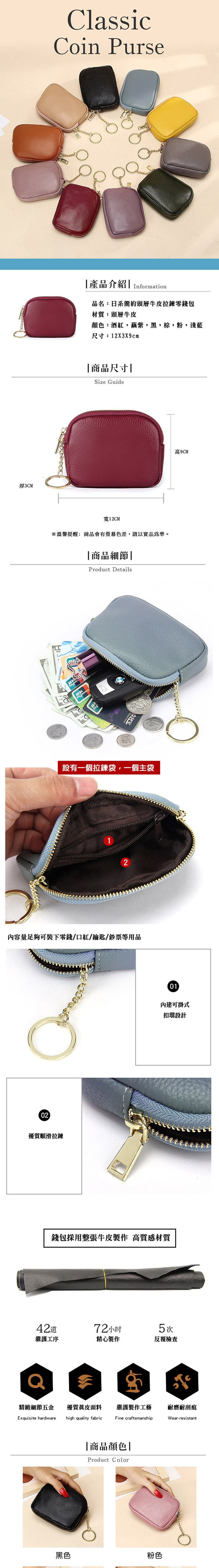 超值2入組【L’eBeauty】日系簡約頭層牛皮拉鍊零錢包 KDB-0021(真皮/零錢包/卡包/牛皮)-美