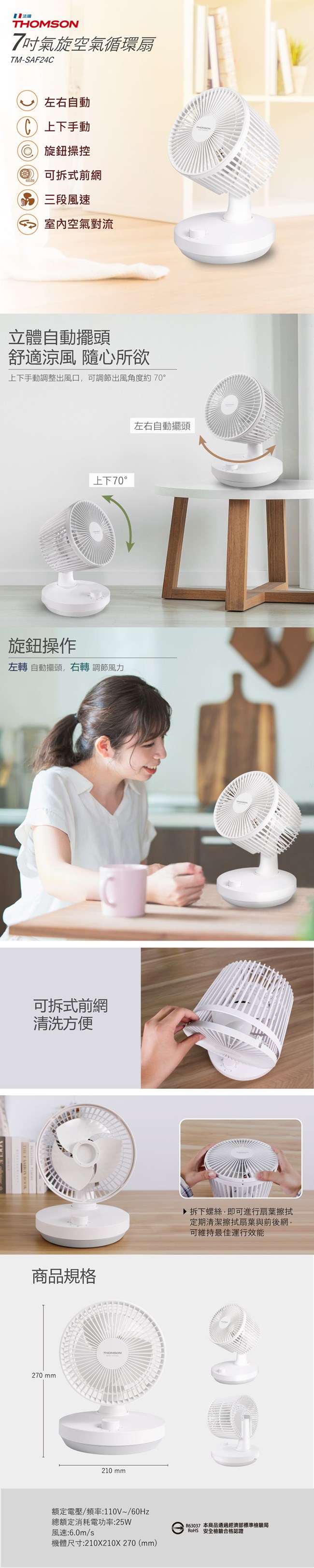 【THOMSON】7吋氣旋空氣循環扇 TM-SAF24C