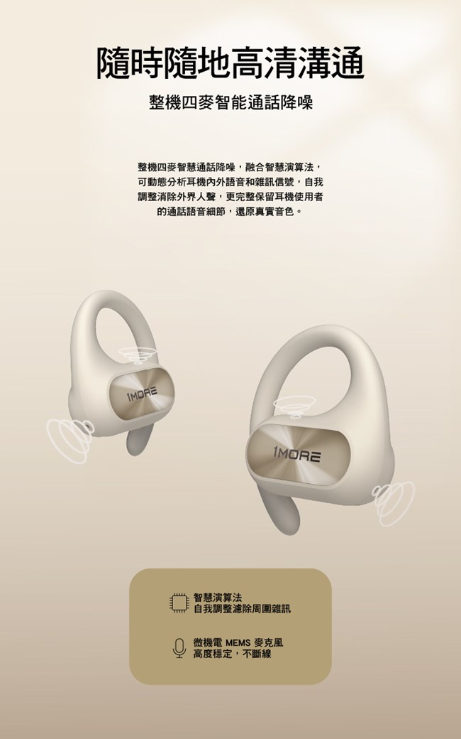 【1MORE】FIT 開放式運動藍牙耳機 S50 珠光白 / EF906-WH