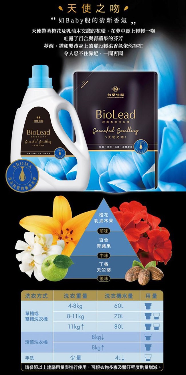 《台塑生醫》BioLead經典香氛洗衣精 天使之吻*(1瓶+2包)