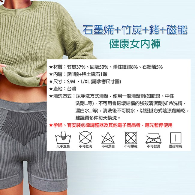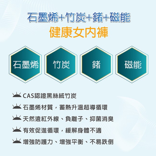 石墨烯+竹炭+鍺+稀土磁石能量健康女內褲(平口)