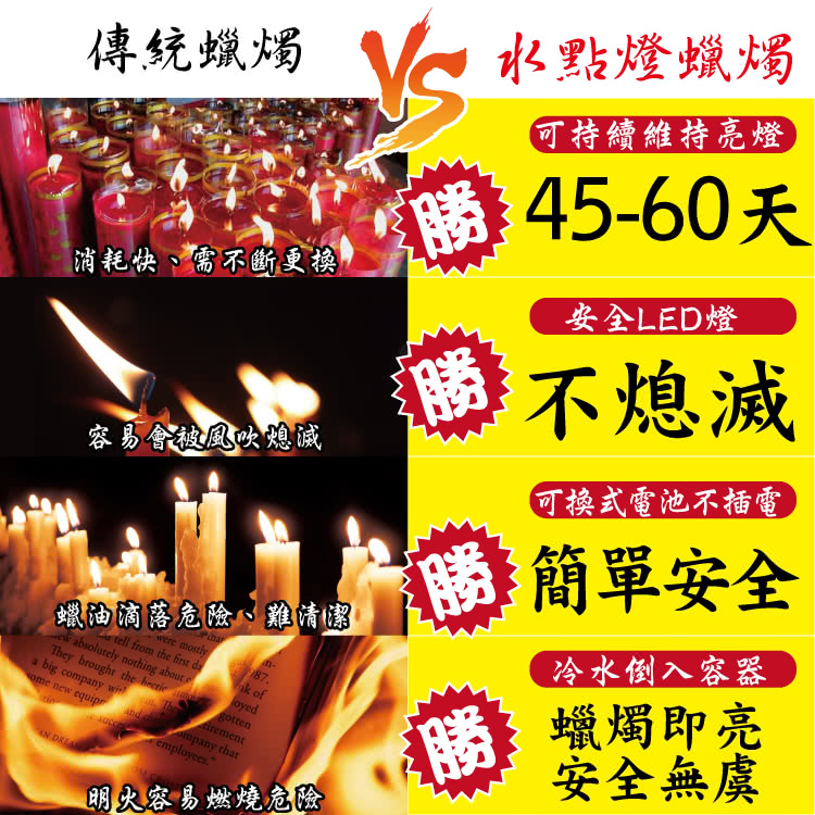 水點燈水蠟燭,是您供奉神明祖先點亮誠心最佳的選擇。