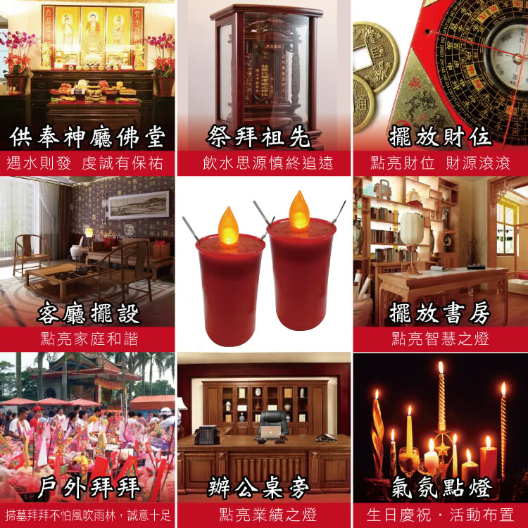 ※ 無需電線,不論佛廳桌上,拜天公、拜門口、拜祖先方便安全