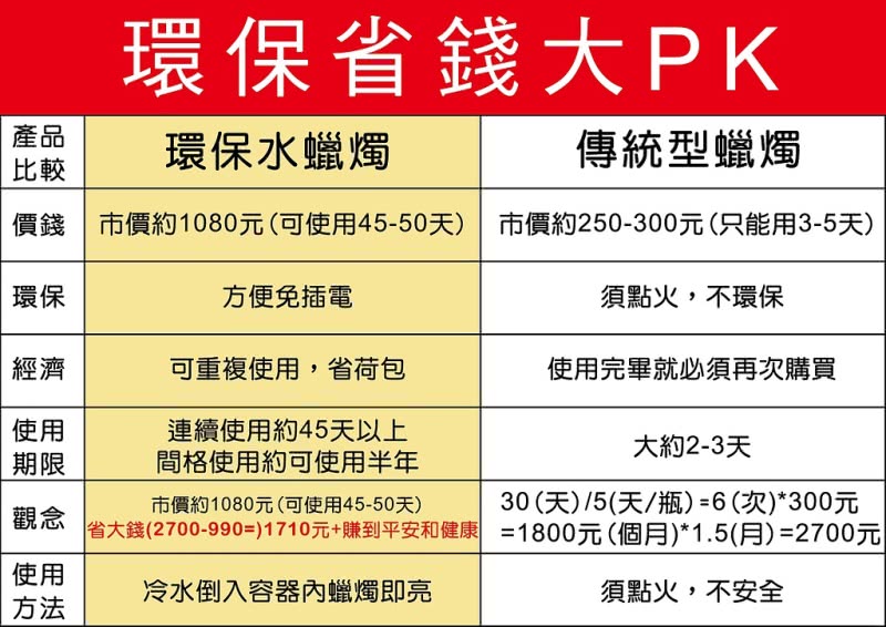 比買有火災危險的傳統蠟燭更划算,省錢又方便。