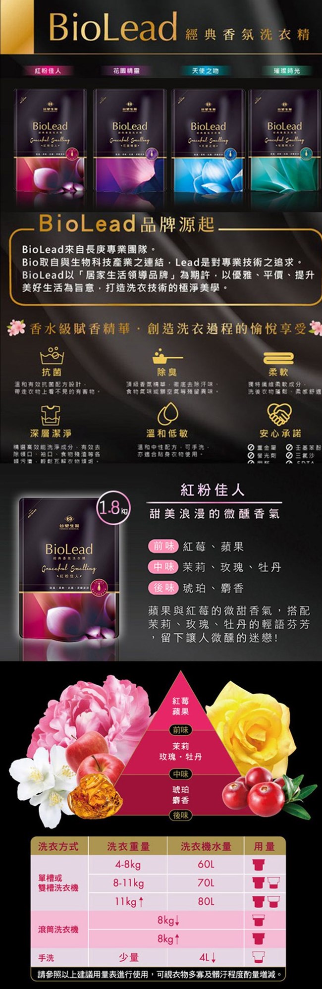 品名:BioLead經典香氛洗衣精補充包 紅粉佳人1.8kg