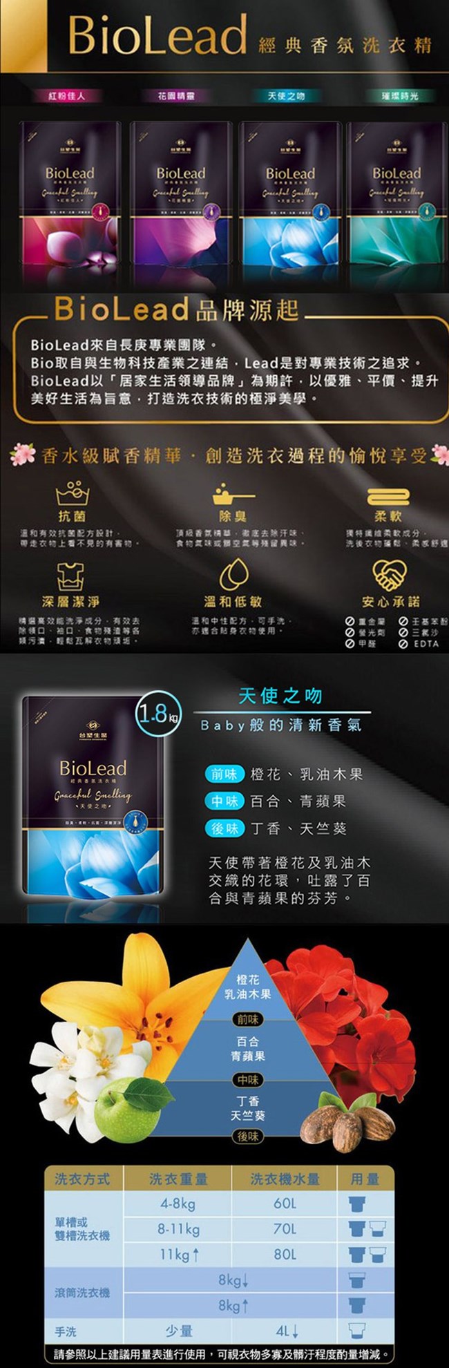 品名:BioLead經典香氛洗衣精補充包 天使之吻1.8kg